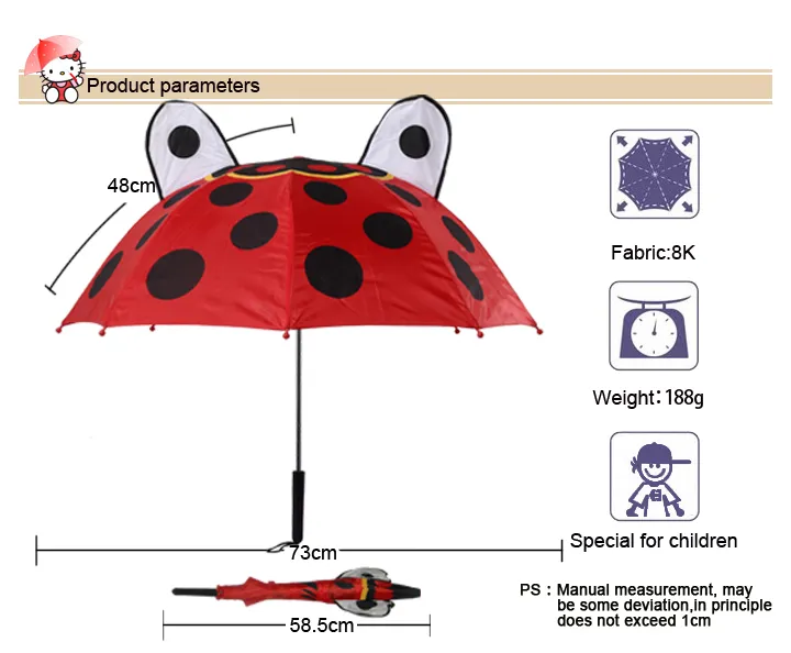 2020 High quality Customer red color straight kids girls Manual Open ear umbrella for children